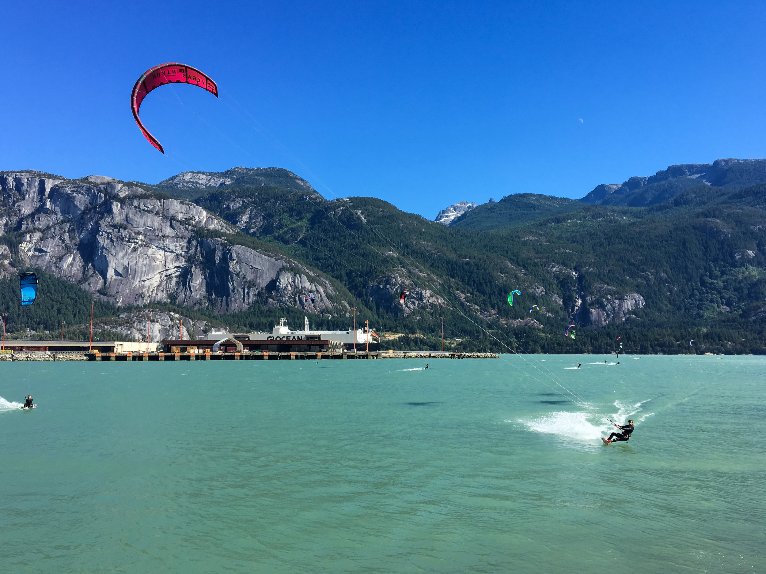 Finally, with its proximity to the stunning Howe Sound, Squamish offers some of the best kiteboarding and windsurfing in the province. While we didn’t give this extreme sport a try (much to Derrick’s dismay) – lessons start at $150/per person! – we did head to the Squamish Spit one afternoon to see what it was all about. We stopped by on a Saturday and were surprised to find hundreds of kite boarders and windsurfers launching directly from the spit. The water and sky were full of brightly colored sails and kites as far as you could see. I was shocked there weren’t any collisions for how packed the sound was.